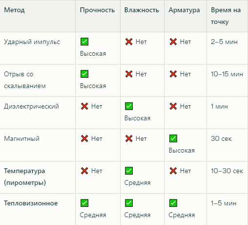 Склерометры (например, Silver Schmidt), ультразвуковые дефектоскопы (Пульсар 54A).
